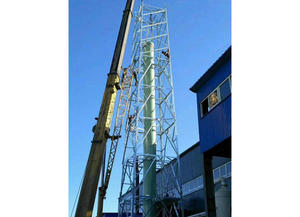 由于很多煙囪的工作溫度較高(一般為50-180℃),煙氣成分復雜,一般樹脂不能滿足其要求,所以選擇內襯樹脂及結構層樹脂的關鍵是能否滿足在高溫情況下的腐蝕要求,結構層樹脂選材也需適應耐高溫要求,還需考慮結構樹脂的斷裂延伸率與內襯樹脂的斷裂延伸率相匹配。考慮到安裝的方便性,們根據客戶安裝要求,將煙囪進行分段加工,然后在現場組裝;也可根據客戶的意愿來設計安裝工藝。